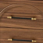 Sir Lionell Gliding White Sintered Stone Dresser - Amber Brown Wooden Leg