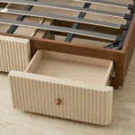 The Harper King Bed is designed to give your child extra space to stretch out while still fitting neatly into a compact room. The sturdy frame includes a rounded headboard with grooved panels in calming beige.