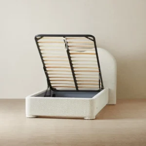 Bed with gas lift mechanism and under-bed storage. Bed storage compartment (cm): W106XD203xH25.