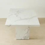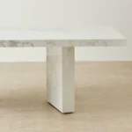 The Port Lucienne Dining Table has a striking monolithic presence with its bold slab design. Crafted from sintered stone, it offers the look of natural marble.