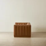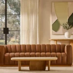 The Portia Vintage 4-Seater Sofa makes a bold statement with its deep vertical channeling. Upholstered in vintage tan leather, it develops character over time while offering a rich, lived-in feel.