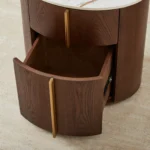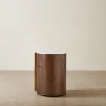 Sir Lionell Amber Brown Bedside Table – Gliding White Sintered Stone Top