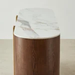 Sir Lionell Gliding White Sintered Stone Dresser – Amber Brown Wooden Leg